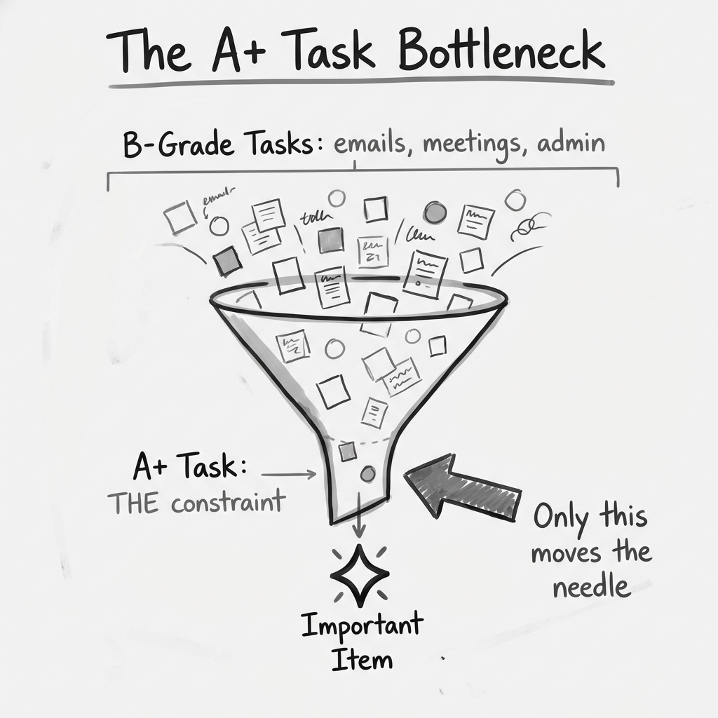 Your business has exactly one bottleneck—one constraint that limits growth more than anything else. Your A+ Task is the work that directly addresses that bottleneck.