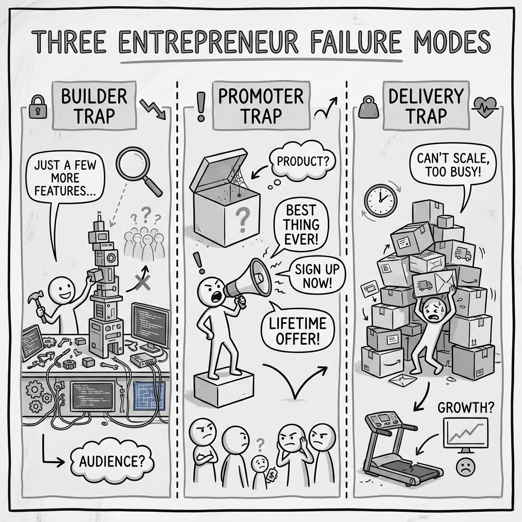 - The Builder Trap: Amazing at creating but building without promoting is like throwing a party and forgetting invitations. Great product, empty room.